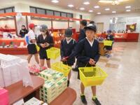 最後はおみやげタイム。計画したとおりにかごに商品がどんどん入っていました。写真の一番手前は、子供たちの話題になっていた「バナナカステラ」です。