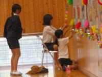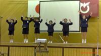 3年生真向法体操…「体がやわらかくなったから,毎日教えてもらったことをできたらいいなと思います。」