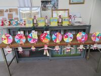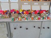 現在、坂瀬川小の職員室前で、坂瀬川保育園と宮原保育園の子供たちの作品をお借りし、作品展を行っています。どれもかわいらしく、上手な作品がいっぱいです。