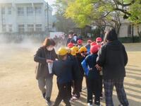 教頭先生の校内放送を聞いた後、避難開始です。「お・は・し・も」を守って、素早く避難する姿に苓北分署長さんが坂っ子の姿をとても褒めてくださいました。