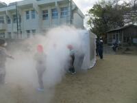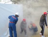 濃煙体験…煙で前が見えません。呼吸も苦しくなります。