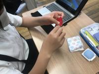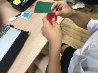 1年生の学級活動で「みのまわりを きれいにしよう」という授業が行われ、日頃自分たちが使っている教室の机をきれいにしました。養護教諭から身の回りをきれいにする理由など分かりやすく話していました。担任からきれいな拭き方の説明を聞き、実際にウエットティッシュを使って拭く活動を行いました。拭いた後のウエットティッシュを見て、みんな驚いています。「わぁ、こんなに汚れてた。」という声があちこちから聞かれました。その後、自分の机を新しいウエットティッシュで拭き、きれいにしようと頑張る姿が見られました。