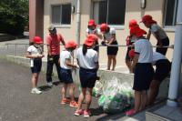 本校の運動場は、取っても取っても次々に草が生えてきます。体育委員会で活動を考える際に、「運動場を思いっきり使うために草をどうにかしたい。」「みんなの体力を高める取組もしたい。」といった意見が出されました。この2つの課題を同時に解決できる方法はないかという話し合いの中から生まれてきたアイディアです。