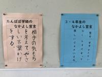 自分たちの学校の運動場を大切に使おうと、体育委員会の子供たちが自分たちで考えてくれました。こういう子どもらしいアイディアは、大歓迎です。