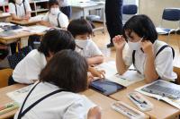 5年生の理科「流れる水のはたらきと土地の変化」の授業を見せてもらいました。授業を見ながら、以前理科専科として授業をしていた時のことを懐かしく思い出しました。授業者が、事前に学校の横を流れる小路川や松原川の上流と下流の様子を写真に撮り、それを大型テレビに映し出していました。その違いから、水の流れについて疑問に感じたことや調べてみたいことを引き出し、学習課題を創り出していきました。子どもたちにとっては、地域の自然の様子に目を向け、自然の力のすごさを考えるよい機会になったように感じました。