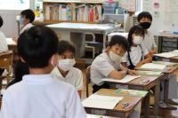 本校の2年生は6名ですが、「ふるさと『さ・か・せ・が・わ』小学校」の「が」くしゅうに一生懸命取り組む子どもたちの姿を見ていただきました。授業後には、参観された先生方から、子どもたちがしっかり考えながら授業に取り組んでいた様子を褒めていただきました。