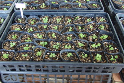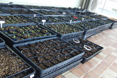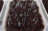 毎年、春に咲く花を種から育てています。子どもたちが種を蒔き、芽が出たものを割り箸を使ってポットに仮植し、ある程度大きく育ったところで学級園やプランターなどに定植していきます。そろそろ種まきの時期が近付いたので、先週金曜日に職員がお試しで花の種を蒔いてみました。まだ数日しか経っていないにも関わらず、びっしりと芽が出ています。