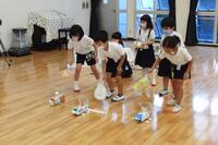 2年生の生活科で、自分たちで考え、作った遊び道具を紹介し、一緒に楽しむ活動が行われました。私は、先週学年で遊ぶ時間に参加させてもらい、楽しい時間を過ごしました。本日は、その「おもちゃランド」に1年生を招待し、一緒に楽しむ時間が計画されていました。1年生も、大変楽しみにしていたようです。