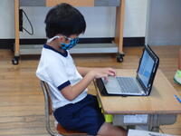本校でも、タブレットパソコンを使った授業を積極的に進めています。高学年の子どもたちは、タイピングもかなり上達し、自分の考えを入力し、意見交換する場面も見られています。各教室を回っていると、1年生もタブレットを使い、算数の練習問題に挑戦していました。「タブレットを使って問題を解くなんて、すごいね。」と話しかけると、「100点でした。」「ぼくは、一つ間違えました。」と結果を教えてくれます。