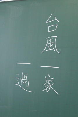 ちなみに、本日のように台風が通り過ぎたあと、空が晴れ渡りよい天気になることを「台風一過」と言いますが、音だけを聞いて、「『台風一家?』って何だろう。」と思った子供もいたようです。ある教室で話題になっていました。子供たちの素朴な発言に、昨日までの疲れが吹き飛ぶ思いがしました。