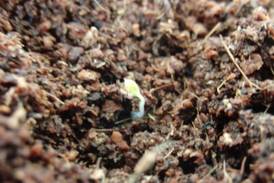 来年の春に向けて、種から花を育てる活動を行っています。先週、各学年でパンジーやキンギョソウ、ペチュニアなどの花の種を種まき用専用の培養土に蒔きました。職員室前にも培養土を用意して蒔いてありますが、朝から5年生の児童が「先生、芽が出ています。」と教えてくれました。職員は気付いていなかったのですが、よく見ると、確かに一つだけ芽が出ています。