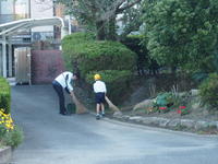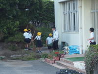子供たちとあいさつを交わした後、いつものように玄関周辺を掃除していました。ちょうど給食室周辺の草を取っていると、「校長先生、おはようございます。何か手伝いましょうか。」と声をかけてきた子がいました。「ありがとう。」と振り向くと、なんと1年生の男の子が一人で立っています。誰かに手伝うように言われたわけでもなく、ただ私の姿を見て声をかけてくれたようです。