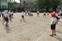 その縦割り班を使って、児童会の体育委員会が中心となり、昼休みに「しっぽとり大会」を企画してくれました。体力テストの結果から、走力や敏捷性に課題があることが見えてきました。全校で体力の向上を図ることを目的に計画したそうです。対抗戦ですので、4日間かけて優勝の班を決めることになります。