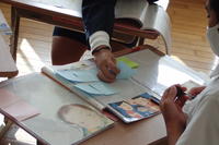 「校長先生、ちょっと来てください。」1年生は、よく校長室にやってきては、このように話しかけてきます。昨日は、手を引っ張られて1年生教室まで連れて行かれました。何だろうと思っていると、「校長先生の車の番号をここに書いてください。」とお願いされました。