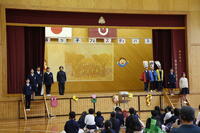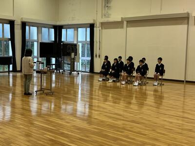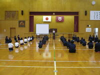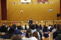 全校児童が集まって話を聞く様子を見ると、一人一人が心身ともに大きく成長してくれたことを感じます。本校の教育活動に対して、ご理解並びにご協力いただいた保護者や地域の方々に、深く感謝申し上げます。次年度もよろしくお願いいたします。