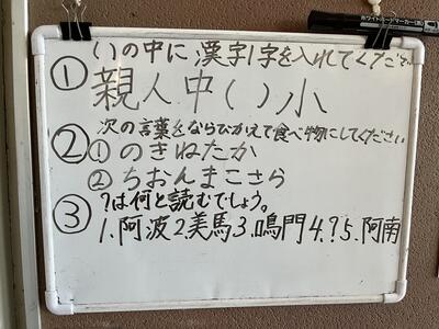 5年生の係活動で「THE クイズ」という係があるようですが、教室背面のホワイトボードにクイズが出題されています。授業を見せてもらう際に、そのクイズの答えも考えています。5年生の教室で話していると、クイズが目にとまったので考えたのですが、答えることが出来ませんでした。「ヒントをください。」と係の子にお願いすると、「ヒントを言うと答えが分かってしまうから、言えません。」と断られてしまいました。この「校長室から」を書いている今も、答えが分からずにいます。5年生の担任は、「校長先生、答えが分かりましたよ。20分ほど考えました。」と報告してくれましたが、答えは教えてくれませんでした。「親 人 中 ( ) 小」の( )の中に漢字を1字入れるのですが、なかなか答えがひらめかず、苦戦しています。