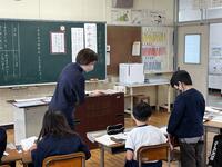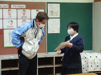 本日、6年生は、小学校生活最後の外国語の授業に臨みました。いつも外国語を教えていただいている先生には、本校の子どもたちの実態に応じて丁寧に指導していただいています。小学校最後の外国語ということもあり、子どもたちが進学する中学校で英語を担当されている先生にも、授業の様子を見ていただきました。また、その先生に対して、子どもたちが英語で自己紹介をしました。これまでの授業で学んだことをもとに、事前に自己紹介カードを作っていました。自己紹介をする時間になると、正しく言えるかどうかを気にして、すぐに先生のところに行くことが出来ず、自分の席で何度もカードを見ながら練習している子がほとんどでした。