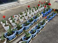 一人2鉢で世話をしているチューリップも、ずいぶん大きくなってきました。美しい花を咲かせるのも、もうすぐです。花壇に花が咲き始め、坂瀬川小がさらに明るくなってきたように感じます。