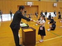 本日、令和4年度の修了式を行い、子どもたちに修了証を渡しました。「よく頑張りました」という言葉を添えて手渡すと、うれしそうに「ありがとうございました」と返してくれました。また、各学年の代表が、1年間を振り返って感想発表をしました。「字が上手に書けるようにがんばりました。」「跳び箱を6段跳べるようになりました。」「自分の苦手な勉強を自計学でがんばったら、だんだん点数が取れるようになりました。」など、それぞれの頑張りと成果を堂々と発表できました。1年生の代表の子は、原稿を見ずに発表し、力を付けてくれたことをうれしく思いました。