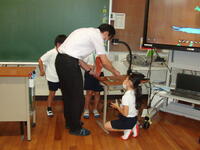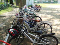 雨天のため延期していた自転車点検と自転車の乗り方の練習を、本日実施しました。午前中に地域で自転車の販売や修理を行われている方にお願いし、一台ずつ丁寧に点検していただきました。子どもたちが乗っている自転車の状態をうかがったところ、以前に比べて整備されている自転車が増えてきているとのことでした。やや整備が不十分な自転車については、その場で修理もしていただき、本当に有り難く感じています。