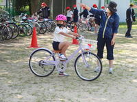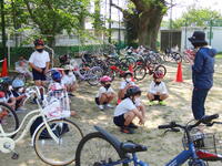 午後からは、3・4年生を中心に、自転車の乗り方の練習が行われました。一人一人が「右よし。左よし。後方よし。」と声に出しながら安全確認を練習しました。また、ブレーキのかけ方やカーブの曲がり方についても、なぜ必要かを指導者が問い、考えながら練習に取り組んでいました。