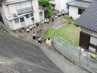 自然災害は、いつ、どこで出会うことになるか分かりません。大地震が発生した場合、海の近くにある本校は、津波に襲われることが想定されます。その際の避難場所として、高台にある大師山を定めています。本日、その大師山まで避難する訓練を行いました。急な坂道がありますので、初めて訓練に参加した1年生は苦労していましたが、避難場所を目指して一生懸命駆け上がっていました。