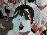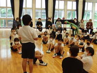 お話に合わせて紙芝居を披露されている際は、子どもたちがお話の世界に引き込まれていることが、マスク越しでも伝わってきました。実際に絵が動いたり、小道具を貼り付けたり、大きな恐竜が出てきたりと、私も楽しませてもらいました。子どもたちのお話についての感想発表を、笑顔で聞いてくださいました。