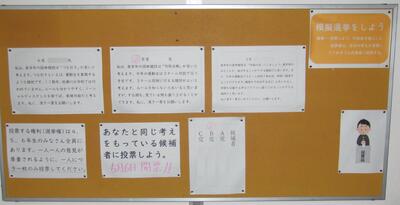 昨年度の運動会の取組から、種目を1~2つ増やしてもよいのではという意見を受け、検討を行いました。その結果、先生方が協力して種目案を考え、子どもたちの投票で決めることにしました。子どもたちに種目のみを示すのではなく、その種目を行うことでどのようなよさがあるのかを説明した文章を添え、それぞれの効果を読み比べながら子どもたち自身が判断し、一票を投じることが出来るようになっていました。6年生の社会科の授業で選挙の仕組み等についても学びますが、育てたい資質・能力を育むために教科を横断した形で先生方が考案した取組です。投票の結果、子どもたちが一番賛同した種目は「竹取合戦」だったようです。