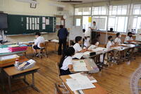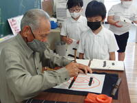 苓北町の小中学生の毛筆の指導は、 馬場國昭 先生にお世話になっています。本年度もご指導いただくことになり、本日1回目の毛筆指導が3年生と6年生で行われました。馬場先生には、書道を通して礼儀の大切さやものの見方・考え方など、生きていく上で必要なことをたくさん教えていただいており、授業を見ている私も学ぶところがたくさんあります。また、一人一人の子どもたちのよさを認め、ほめ、励まし、伸ばす指導姿勢から、先生方も指導者としての在り方を学んでいます。
