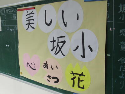 代表委員会の話合いを経て、本年度の児童会テーマが決まりました。昨年度は、感謝の気持ちを表現することを目的にテーマが作られました。本年度の児童会テーマは、「美しい坂小~心 あいさつ 花~」と決まり、先週の一斉下校の際に披露されました。みんなで児童会テーマを唱える際は、「心 あいさつ 花」の部分は、手話形式で表現するようです。美しい坂瀬川小にするために、みんなで取り組む内容がはっきりしていて、大変よいテーマが出来上がったと感じました。このテーマの具現化に向けて、学級や委員会が考え、そして動くことになってきます。みんなで力を合わせて「美しい坂小」づくりに励んでいきます。