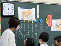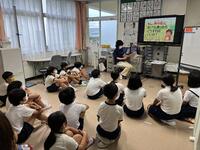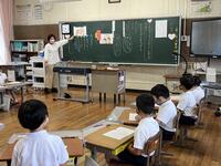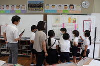 保育所と小学校とがお互いの教育・保育を理解し合い、子供の育ちや学びをつないでいく取組の一つとして、保育所の先生方に1年生の授業を参観していただきました。これまで新型コロナウイルス感染症拡大防止の観点から、2年間見合わせてきましたが、本年度は実施することにしました。