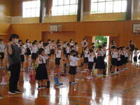 4月は、くまもと防災教育月間です。本校では、本日「地震津波避難訓練」を行いました。災害時の児童の避難場所は、大師山となっています。朝から雨が降り、児童の避難経路の安全面を考慮して、本日はホールに集合することとし、大師山への避難訓練は、後日計画することにしました。