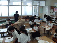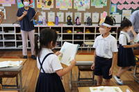 保育所の先生方に、小学校でがんばっている姿を見せようと、1年生はいつも以上に張り切って授業に臨んでいたようです。国語の授業を見ていただきましたが、最近の学習の中で心に残ったものを自分で決め、文章に書く学習活動を見ていただきました。それぞれの園の先生方は、最初は遠くから見ておられましたが、時間が経つにつれて子どもたちのそばまで来られ、笑顔で話しかけていただき、子どもたちも喜んでいました。授業後に、「先生のお話をよく聞いて、これからもお勉強をがんばってください。」と声をかけてもらいました。1年生にとって、本当によい励みになったことでしょう。