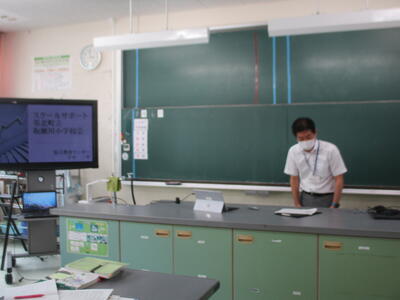 本日、第1回目の学校運営協議会を行いました。協議会の冒頭で、児童会を代表して、委員会の委員長から本年度の取組の紹介を行いました。4年生以上の児童が少なくなったため、これまでの委員会の活動を統合し、本年度は4つの委員会が活動しています。学校運営協議会委員の方々は、子どもたちの発表をメモを取りながら聞いておられました。子どもたちの発表後、委員会活動について質問や意見をいただきました。「一番本を読んでいる子で、何冊ぐらい読んでいるのかな。」「どんな活動をしようと考えているのか、もう少し詳しく教えてください。」などの質問がありましたが、委員長の子どもたちは、一生懸命答えていました。
