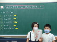 子どもたちには、「心は、一生懸命に勉強をしたり運動をしたりするためのエンジンです。心を成長させる道徳科の時間に、教材に出てくる人物の気持ちや出来事の理由などを考えながら、心のエンジンを成長させていきましょう。」と伝えました。