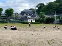 朝のボランティア。ホーキーズや運動場の草抜きをしています。