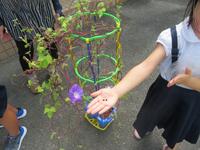 1年生が校庭で朝顔の種取りをしていました。夏休み中は自宅に持ち帰り、お世話を頑張ったおかげで、朝顔はたくさんの種をつけてくれています。9月に入っても暑い日が続きますが、まだ花を咲かせてくれています。よく観察したり、集めた種をどうするか考えたりしながら、学習を進めていきます。