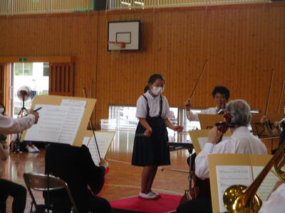 演奏会の最後を締めくくるのは,東京フィルハーモニーオーケストラの演奏に合わせて歌う「坂瀬川小学校校歌」です!何て贅沢な校歌斉唱でしょう!!