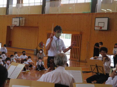続いて,ブラームス作曲の「ハンガリー舞曲第5番」を3人の子供たちが指揮をしました。さすが一流の演奏者のみなさんです。それぞれの指揮者に合わせて,曲の速さや強弱を変えて演奏していました。