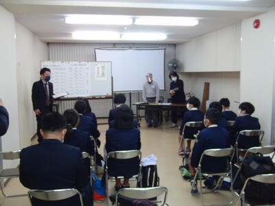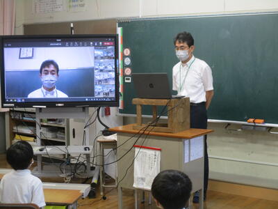 今回は,同じ苓北町内の富岡小学校の5年生のみんなとの合同教室です。はじめに,富岡小学校の島田校長先生からお話がありました。