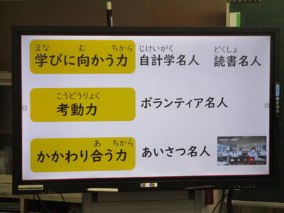 最後に,各学年の発表を見た感想や意見の交流を全校児童で行いました。「こういう発表の仕方がとても分かりやすかったです。」「○○って,どういう意味ですか。」「◇◇について,私でもできることをやってみたいです。」など,たくさんの感想や意見が出てきました。今回の様子は,期間限定の「YouTube」で,保護者の方々限定で配信しました。後日,DVDでも配付予定です。