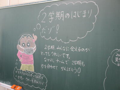 4月10日(月)新しい先生をお迎えする式(就任式)と、1学期始まりの式(始業式)がありました。教室には新しい担任の先生からのメッセージがありました。また、朝からは清掃のボランティアもしっかりできていました。すごいですね。