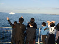 鬼池港からフェリーに乗船し、口之津港に到着しました。いよいよ修学旅行、スタートです。