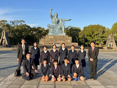 午後からは、追悼平和記念館での平和集会を行い、長崎に落とされた原子爆弾の被害に遭われた方々に対して哀悼の気持ちを込めて黙祷するとともに、持参した千羽鶴を捧げました。その後、被爆体験をされた方の講話を聞きました。当時の長崎市内の様子や被害に遭われた方々の苦しみを聞き取る中で、涙ぐみながら聞いている子もいました。代表児童が感想を述べたのですが、感極まって言葉が出てこない場面もありました。これまで6年生担任として、数多くの子どもたちと長崎に修学旅行に来ていますが、このような場面を体験したのは、初めてでした。聞いている私も涙が出てきました。6年生の感性の豊かさに感激しました。今回の修学旅行のガイドさんも、このような6年生に初めて出会ったと感動されていました。