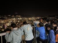お風呂に入った後、長崎の夜景を楽しみました。外は雨が降っていましたが、きれいな夜景を見ることができ、子どもたちも大変興奮していました。用意した傘を差して活動することもなく、本当に幸運な子どもたちだと思いました。2日目の活動に向けて、今夜はぐっすりと休むことでしょう。明日もタイミングを見ながら速報を掲載していこうと考えています。