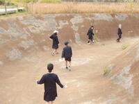 坂瀬川グラウンドでは、縦割り班で鬼ごっこをしたり、サッカーをしたり、バレーをしたり、1時間ほど思いっきり遊びました。