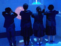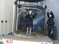 その後、宇宙科学館に向かいました。昼食を取った後、館内のアトラクションを楽しんだり、展示物を見学したりしながら楽しく過ごしました。ムーンウォークや無重力体験のコーナーでは、「緊張する。」と言いながらも、笑顔で体験する様子が見られました。宇宙科学館で最後のお買い物をし、口之津港へ向けてバスに乗り込みました。