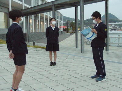 口之津港に到着し、都呂々小学校との連合修学旅行の解団式を行いました。各校の代表児童が2日間の修学旅行の感想を発表しました。長崎の語り部さんの話や見学を通して、戦争の恐ろしさを知り、平和な世界を作っていきたいという感想や、友達との交流を通して楽しい思い出ができたことなどを発表してくれました。