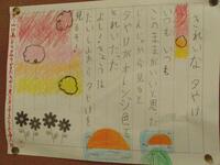 お風呂で暖まったのにドアを開けると寒かった経験、跳び箱を跳んだときの気持ちなど、その時々の感情がよく表現されていました。きれいな夕焼けをずっと見続けていたいという気持ちがこもった詩もありました。中でも、題名に「人生」と付けられたものもあり、2年生とは思えない発想にびっくりしました。