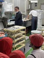 当日は、売り場を見学させていただき、熱心にメモを取る姿やお客さんにインタビューをする姿がありました。また、特別に鮮魚や精肉、惣菜のパック詰めの様子を見せていただきました。